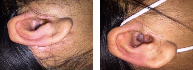 Se cita a paciente en 4 meses con adecuada evolución, se aprecia conducto auditivo externo permeable. (Imagen 5 y 6).